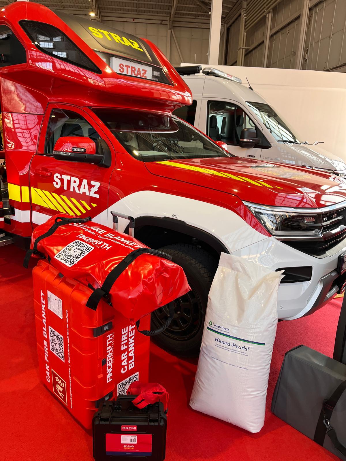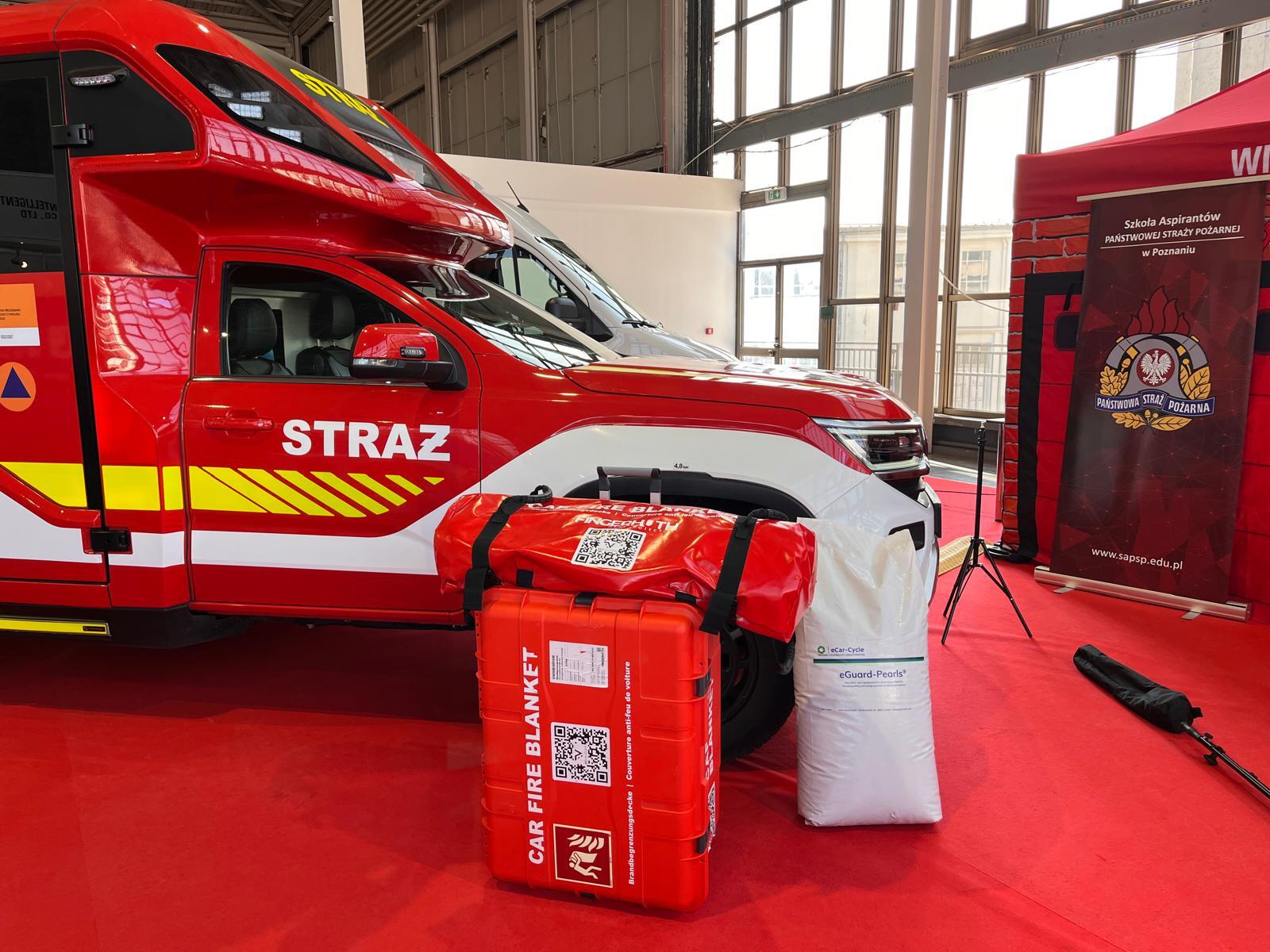 Prewencja w dobie elektromobilności Obecność na tak prestiżowym stoisku to dla nas ogromne wyróżnienie oraz potwierdzenie skuteczności naszych technologii. Podczas wydarzenia skupiliśmy się na rozwiązaniach realnie podnoszących poziom bezpieczeństwa w sektorze elektromobilności. Odwiedzający mieli okazję z bliska zapoznać się z naszymi flagowymi produktami, w tym ze specjalistycznymi płachtami zabezpieczającymi, dedykowanymi do izolowania pojazdów elektrycznych.